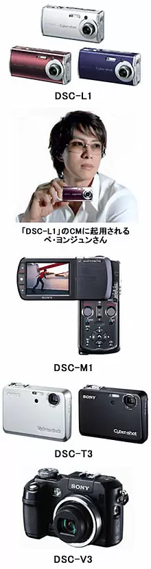 新シリーズの「DSC-L1」は、「一番セクシーなサイバーショット」をコンセプトに女性を意識したデザインを採用し、3色のカラーを揃えた。小型サイズながら上位モデルと同等の高画質記録機能を搭載している。テレビCMには韓国の人気俳優ペ・ヨンジュンさんを起用する。