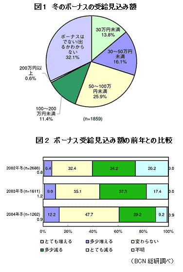 BCN(奥田喜久男社長)の市場調査部門であるBCN総研が行った「2004年冬のボーナスの使い道」に関するアンケート調査で、購入したい商品として「DVD/ハードディスクレコーダー」(27.8%)が03年冬、04年夏に続き、3期連続でトップとなった。購入理由としては、「価格が購入しやすくなったから」とする回答が4割弱を占め、値頃感が出てきたことが要因となっているようだ。