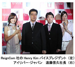 同社は2001年に韓国で創業。2003年7月に日本法人を設立している。現在は、フラッシュメモリタイプの今年度米国出荷台数トップとなっている。新製品の発表にあわせ、韓国から来日した親会社ReignCom社のHenry Kimバイスプレジデントは、「今年度は全世界で300万台の出荷を見込んでいる。携帯オーディオの全世界出荷台数は2200万台と見込んでいるため、15%シェアを当社がもつことになる。設立わずか6年で世界の15%シェアを獲得できた」と、その成長性に自信を見せた。
