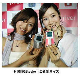 新製品の「H10シリーズ」は、名刺サイズの5GBデジタルオーディオ。96gと軽量で、1250曲以上の音楽ファイルを収録可能。26万色表示が可能な1.5インチカラーディスプレイを搭載するとともに、最大18mWというクラス最大のヘッドホン出力を行える。