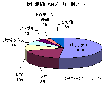 これら数多くの“無線化”商品が発売される背景には、その接続設定操作が以前と比べて格段に簡単になったことが挙げられるだろう。とくにメーカーシェアでトップを走る(図)バッファローの製品には、接続設定からセキュリティの設定までのすべての操作をボタンひとつで行える「AOSS」というセットアップ機能がついている。この接続設定のシンプルさが同社製品の人気を支える大きな要因となっている。