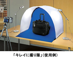 価格は、「デジカメスタジオ XLサイズ」が2万6250円。「専用バックシート」がMサイズ用1785円、Lサイズ用2625円、XLサイズ用5250円、「デジカメライト 100Wタイプ」が1万290円。05年度の年間販売目標額は6000万円。
