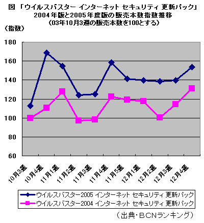 図は、「更新パック」の販売本数指数推移。発売後から大きく本数を伸ばし、引き続き好調な推移を持続している。「『最新版』購入ユーザーの14%くらいが『更新パック』に関心を示している」(同社調査)という言葉どおりの結果を得た。