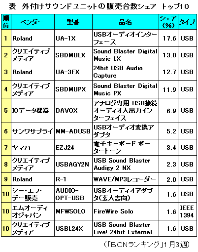 供給ベンダーが多様な点も見逃せない。オンキヨーやヤマハ、オーディオテクニカといった音響専業メーカー、玄人志向(シー・エフ・デー販売)などのアセンブリメーカー、そしてI・Oデータ機器やラトックシステムズなどのPC周辺機器メーカーなど、多様なベンダーがこぞってこの市場に製品を供給している(表)。