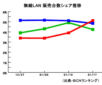 【無線LAN】1月3週、バッファローが上位独占、カード単体の「WLI2-CB-G54L」が初のトップに