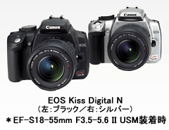 キヤノン(御手洗冨士夫社長)は2月18日、一眼レフデジタルカメラの新製品として、「EOS Kiss Digital N」を3月17日に発売すると発表した。価格はオープンで、実勢価格は、ボディのみで10万円弱、「レンズキット」で12万円弱、「ダブルズームレンズキット」で14万3000円弱となる見込み。初心者ユーザーを対象とし、高画質と使いやすさを追求したモデルとなっている。