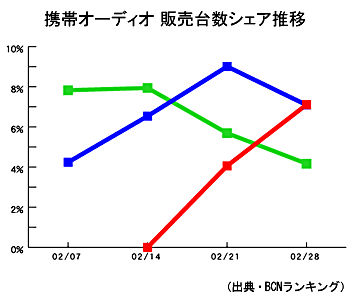 【携帯オーディオ】2月最終週、新型「iPod mini」が発売2週でトップに!「shuffle」も依然好調