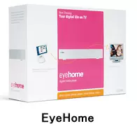 「EyeHome」は、Macのハードディスクに保存された映像、写真、音楽などのデジタルコンテンツをネットワーク経由でつなぎ、テレビ画面に再生したり、ステレオ/HiFiシステムで鑑賞することを可能にするネットワークメディアプレーヤー。映像/音楽/画像/ネットの4つのメニューから構成されている。