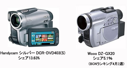 「DVD記録タイプ」を積極的に製品化しているのがソニーと日立。ソニーの売れ筋モデルは「Handycam シルバー DCR-DVD403(S)」。DVD記録だけでなく、16:9のワイド画面に対応するほか、5.1ch対応で音の面でもグレードアップした。おなじみのタッチパネル操作もわかりやすく、他社製品にない使いやすさだ。