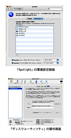 このSpotlight、まず最初にMacのハードディスク内を自動的にスキャンして検索用の索引を作成するのだが、これにとんでもなく時間がかかることがある。なかには「丸2日」以上かかったという友人もいる。既存のMac OS を上書きアップグレードするインストールを行った場合はとくに時間がかかるという声もあるが、必ずそうなるというわけでもないらしい。ちなみに筆者の場合は、Mac OS 10.3.9 からの上書きアップグレードで、使用領域22GBのハードディスクから索引を作成するのに約6時間と比較的「短時間」で終了した。