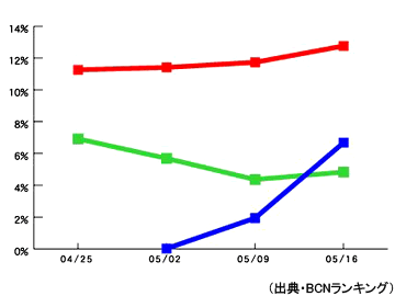 DVDプレーヤー 上位3機種 販売台数シェア推移