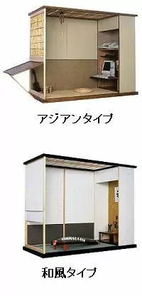 「アジアンタイプ」は、壁の一部とオプションの障子によしずを使い、清涼感のあるデザインとした。また、ココヤシを素材とする床は東南アジア風。外側へ大きく跳ね上げる「にじり」部分から風を入れたり雪見として使ったりもできる。一方「和風タイプ」はオーソドックスな障子を使った純和風のデザイン。「にじり」部分に擦り上げ式の雪見障子を採用した。