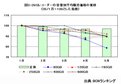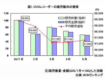 まず、05年1月から5月までの間DVDレコーダーの平均販売価格を見てみよう。