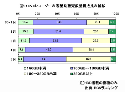 DVDレコーダーの主流は180GB以上にシフト、価格は下げ止まりか?