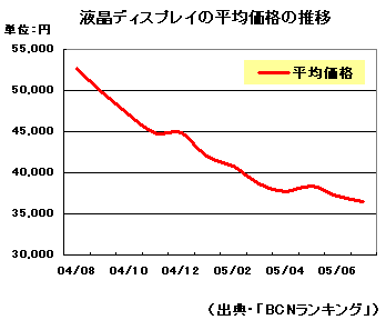 このところ液晶ディスプレイの値下がりが激しい。1年間の価格下落率を「BCNランキング」で集計すると実に31%。5万円を超えていた平均価格も、今や3万円台の中盤にさしかかろうとしている。ランキング首位の攻防戦も激しい。主戦場は3万円台の17インチ。直近では、ソニー「SDM-S75FS」とロジテック「LCM-T175A/S」が僅差で抜きつ抜かれつのデッドヒートを繰り広げている。そこで、ますます競争が激化するLCD市場の現状をまとめた。