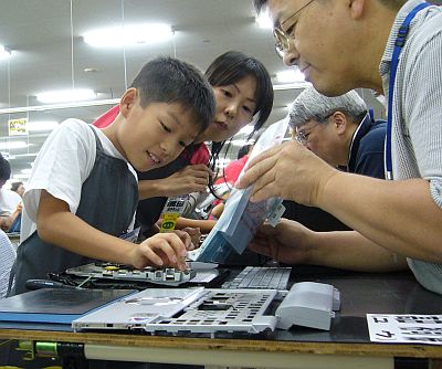 夏休み最後の土曜日となった8月27日、よく晴れた夏空の下、兵庫県神戸市にある松下電器産業の神戸工場に、朝から大勢の親子連れが集まった。子どもたちが「Let's note T4」をみずから組み立てるという、年に1度、工場を挙げて行われる一大イベント『手づくりLet's note工房』に全国からやってきた生徒たちとその家族だ。果たしてノートPCは無事動くのか? 子どもたちと神戸工場社員たちが分かち合った「ものづくり」の喜びとその奮闘ぶりをレポートする。
