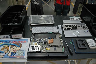 参加した子どもたちは、「Let's note T4」(CF-T4GW5AXP)を約1時間半かけて自分の手で組み立て、午後は自ら出荷検査を行い、自分で包装・梱包して当日に持ち帰ることができる。「教材」に「Let's note T4」が採用されているのは、軽量・長寿命バッテリー・タフなボディーというシリーズのコンセプトがもっともはっきりしたモデルだからだ。参加費用は、パソコン代・昼食代などを含め、パソコンを組み立てる子ども1人につき12万円。決して安い金額ではないが、実は「原価を割っている」という。いくら子どもたちが組み立てるからといっても、T4の価格を考えると無理もない。02年にスタートして今年で4年目の『手づくりLet's note工房』。今年は、50人の募集に、青森から宮崎まで約700人に上る応募があった。その中から抽選で選ばれたのは男の子27人、女の子23人。一番小さい子が9歳の小学生、最年長で18歳の高校生だ。なかなかの「狭き門」だが、実はスタッフも希望者が多すぎて「抽選」で選ぶのだという。神戸工場の社員たちも年に1度の「工房」を、とても楽しみにしている。日ごろ生産の現場で働いている彼らが、子どもたちと一緒に「ものづくり」を体験できる貴重なイベントだからだ。