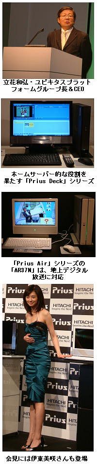 会見には、イメージキャラクターである女優の伊東美咲さんも登場。「パソコンは、ファンとのメールのやり取りなどで「Prius」を使っているという。Priusについて、「(重要なシーンだけを抜き出す)『いいとこ観』などの機能があって、とっても便利」と評価していた。