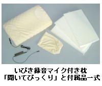 素材に低反発フォームを採用したフィット感のある枕に、いびきを集音する高感度小型コンデンサーマイクを内蔵。録音ができるオーディオ機器などと接続することでいびきを録音する。いびきは仰向けで寝た際の筋肉の弛緩に伴い、軟口蓋や舌根などが沈下し気道を塞ぐことで起こることが多く、仰向けから横向きに寝姿勢を移行していびきがおさまる場合が多い。