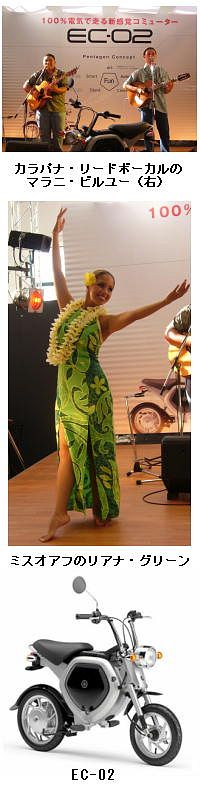 「ウイークエンドライフ with EC-02 LOHASな休日」と題し、ハワイの人気Tシャツショップ「88TEES」デザインの「EC-02」用オリジナルサイドパネルをあしらった「88TEESタイアップモデル」展示のほか、体感試乗会なども行う。
