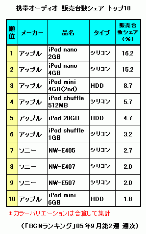 iPod nanoが垂直発進、初登場1位で早くも市場塗り替える勢い