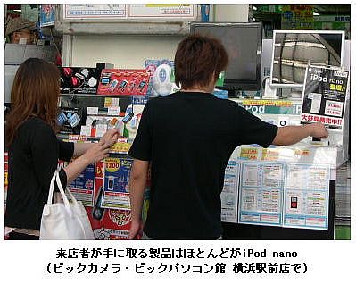 この週末販売店を回った感触では、iPod nano の形とその小ささのインパクトがよほど大きかったと見えて、これまで携帯オーディオ売り場であまり見かけることのなかったオジサン層や、nanoを見て初めて携帯オーディオを買うという人も多く見かけた。こうしたユーザー層の裾野を広げることに大きく成功すれば、携帯オーディオ全体のパイを押し広げる効果をも生み出すかもしれない。ここしばらくnanoを中心とする携帯オーディオ全体の販売動向に注目したい。(WebBCNランキング編集長・道越一郎)