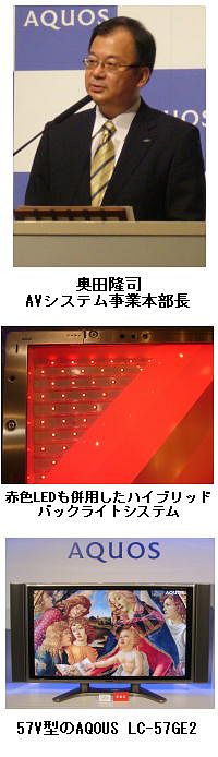 シャープ、バックライトにLEDと蛍光管を併用、57V型と37V型の新AQUOSで