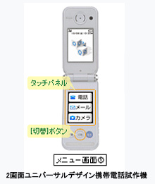 NTTドコモは、使いやすさと分かりやすさを追求した端末「2画面ユニバーサルデザイン携帯電話試作機」を三菱電機と共同開発した。