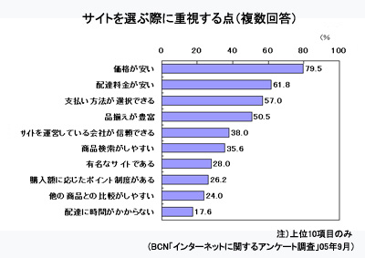 BCN(奥田喜久男代表取締役社長)は、「インターネットショッピングに関するアンケート」の調査結果を発表した。これによると、インターネットショッピングの利用率は9割強に達し、インターネットのショッピングのサイトを選ぶ際に重視する点としては、『安さ』『多様な支払い方法』をポイントにしていることがわかった。
