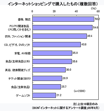 BCN調査、ネットで買い物年間5万円以上、意外に多いファッションと食品関連