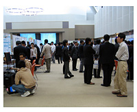 16年目を迎えた「プロコン」。今年の会場は、鳥取県の米子コンベンションセンターだ。10月9日-10日の2日間、予選を勝ち抜いた59校99チーム、約300人が集まった。初日は、課題と自由部門の40チームがブースを並べたデモや、プレゼンテーション審査などが行われる。