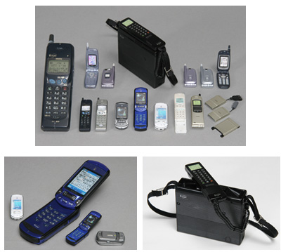 SO505i(下段左)とショルダーホン101型(下段右)