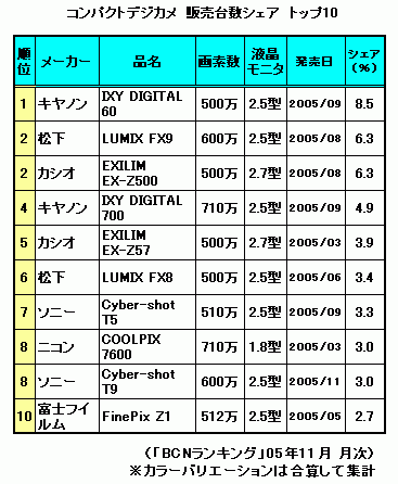 ●やはり強い「IXY」、追いかけるのは手ブレ補正で定評のある「LUMIX」