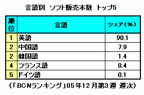 ●語学学習ソフト、もちろん「英語」がダントツ、ではその次は?