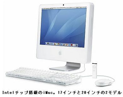 そして発表されたのが、Apple初のIntelプロセッサ搭載マシンとなる「iMac」。搭載されているのは、Intelがつい先ごろ正式発表した、モバイル向けの新しいデュアルコアCPUである「Intel Core Duoプロセッサ」である。17インチモデルが15万9800円、20インチモデルが20万9900円で、やはり同日発売された。