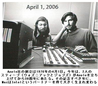 Appleにとって、そしておそらくIntelにとっても、06年は記念すべき年になるだろう。Apple創設以来、幾度となく噂にのぼっては消えていったIntel製CPUを搭載したコンピュータが、ついにAppleから発表された。日本時間11日午前2時、サンフランシスコで開幕したMacWorld Conference & Expoの基調講演で、Appleのスティーブ・ジョブズCEO自ら、06年最初のプロダクツとして披露した。同日8時間遅れながら東京国際フォーラムで開催されたマスコミ向けイベントでは、ジョブズCE