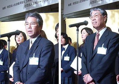 続いて、「ITジュニア賞」のきっかけをつくった和歌山県立田辺工業高等学校の平松芳民校長が、「IT業界のトップの方々に祝福していただき感動している。生徒たちには日ごろ、青雲の志をもつ人間になれと話している。この若い生徒たちが育ち、社会に出たときには、立派なプロとして育て上げてほしい」と挨拶した。