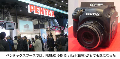 また、ベストセラー銀塩中判カメラの流れを継承するデジカメも出展されていた。その名はまだ仮称だが「PENTAX 645 Digital」。ペンタックス645AFマウントを採用し、有効画素数1800万画素でコダック製の大型CCDを搭載する予定だという。