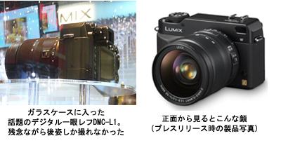 やはり注目は松下初のレンズ交換式デジタル一眼レフカメラ「DMC-L1」だ。ライカレンズを搭載した「DMC-LC5」や「DMC-LC1」の流れを汲む手ぶれ補正機能付きレンズも発表した。