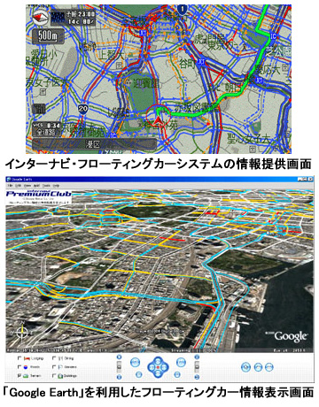ホンダは、同システムが収集したフローティングカー情報を、日本で初めて「Google Earth」を利用して公開開始したとも発表した。「順調(青色)」「混雑(オレンジ色)」「渋滞(赤色)」の3色で交通情報を表示する。当初は東京、名古屋、大阪の中心部から20km四方の範囲での情報提供でスタートし、順次全国に拡大する。情報はインターナビ・プレミアムクラブのサイトで、無料で閲覧することができる。「Google Earth」は、米グーグルが提供する世界の衛星画像などを表示できるソフト。