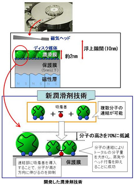 富士通研究所、大容量化実現に一役買うHDD用潤滑剤を開発