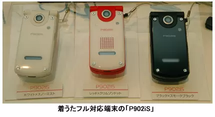 新FOMAのラインアップは「D902iS」「F902iS」「N902iS」「P902iS」「SH902iS」「SO902iWP+」、「DOLCE SL(SH902iSL)」「N902iX HIGH-SPEED」の8機種。「P902iS」は「着うたフル」に対応する端末で、miniSDカードに保存した音楽を再生できるSDオーディオ機能も備える。Bluetoothも搭載し、別売りの対応ワイヤレスヘッドホンで音楽を聴くこともできる。一方、「F902iS」にはウィンドウズ・メディア・オーディオ対応のミュージックプレーヤーを搭載。PCからWMA形式の音楽ファイルを取り込み、再生することができる。PC向けの音楽配信サービスからダウンロードした曲を転送することも可能で、PCからの転送速度を従来よりも6倍に高速化した。