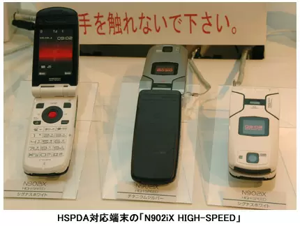 「N902iX HIGH-SPEED」は今回の目玉となるHSDPA対応端末で、受信が最速で毎秒3.6メガビットの高速パケット通信が可能。着うたフルにも対応する。さらにカード型の「FOMA M2501 HIGH-SPEED」も発売。PCMCIA TypeII 規格に準拠しており、PCのPCMCIAスロットに差し込んでデータ通信ができる。HSDPAサービスは現行のFOMAのパケット通信料で利用でき、夏頃開始の予定。