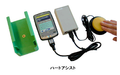 「ハートアシスト」は市販の接点スイッチやPDAなどを使って、言語機能が不自由な人でも、意思を伝達できるようにする装置。視覚シンボルや登録文章で意志伝達を支援し、バッテリーで稼働するPDAを利用しているため、車椅子などでの移動時でも使えるのが特徴。