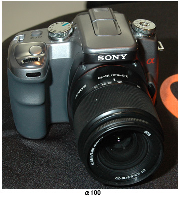 ソニーが7月21日に発売する「α100」はコニカミノルタから受け継いだ「αマウントシステム」を使い、CCDが有効1020万画素の高画質が特徴のデジタル一眼。実勢価格は10万円前後の見込みだ。
