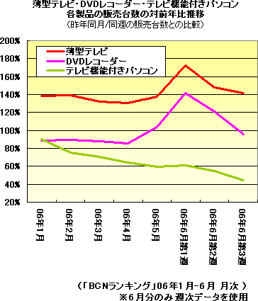 ※薄型テレビ…液晶テレビとプラズマテレビの合算/テレビ機能付きパソコン…テレビチューナーを1基以上搭載したデスクトップPCとノートPCの合算