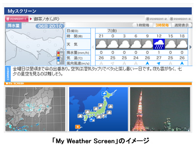 新サービスでは天気予報の表示するエリアや利用するコンテンツを登録し、自分専用の天気情報ページを作成することができる。エリアは3か所、コンテンツは最大6つまでが登録可能。利用は無料。