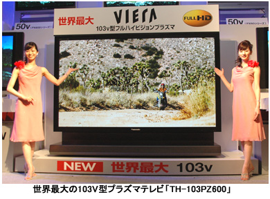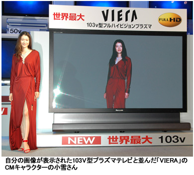 3月の新製品発表会で松下は、フルHDの液晶テレビよりハイビジョン対応のプラズマに優位性があるとアピール。フルHDには消極的だった。しかし、「50型以上がフルHDに向いていることや市場でのニーズが高い」(藤田正明・PDPテレビビジネスユニットビジネスユニット長)ことから製品の投入を決めた。発表会には「VIERA」のCMキャラクターに起用されている女優の小雪さんが登場し、103V型プラズマテレビで映し出された自分の映像を見て「怖いぐらいの大きさだけど、画面がとてもきれい」と感想を語った。
