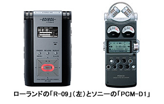 これまで内蔵メモリが中心だった記録メディアにも広がりが見え始めた。miniSDメモリカードスロット搭載のモデルが登場し始めたり、さらにには、三洋電機の「HDR-B5GM」のように5GBながらHDDを搭載するものも現れている。いずれも、時間を気にせずにたっぷり録音できるのが魅力だ。さらに、ここまで紹介した製品とは少し毛色の変わった音質重視のものも登場している。楽器演奏の生録など「高音質」を徹底的に追求したいという人向けに、非圧縮の高音質録音ができるローランドの「R-09」やソニーの「PCM-D1」といったモデルがそれだ。