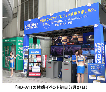 東芝は7月27日、東京千代田区のヨドバシカメラマルチメディアAkibaで同日発売した次世代DVD規格「HD DVD」の録画・再生が可能な世界初のHDD搭載レコーダー「RD-A1」の体感イベントを開催した。なお、同イベントは7月30日までの4日間にわたり開催する。